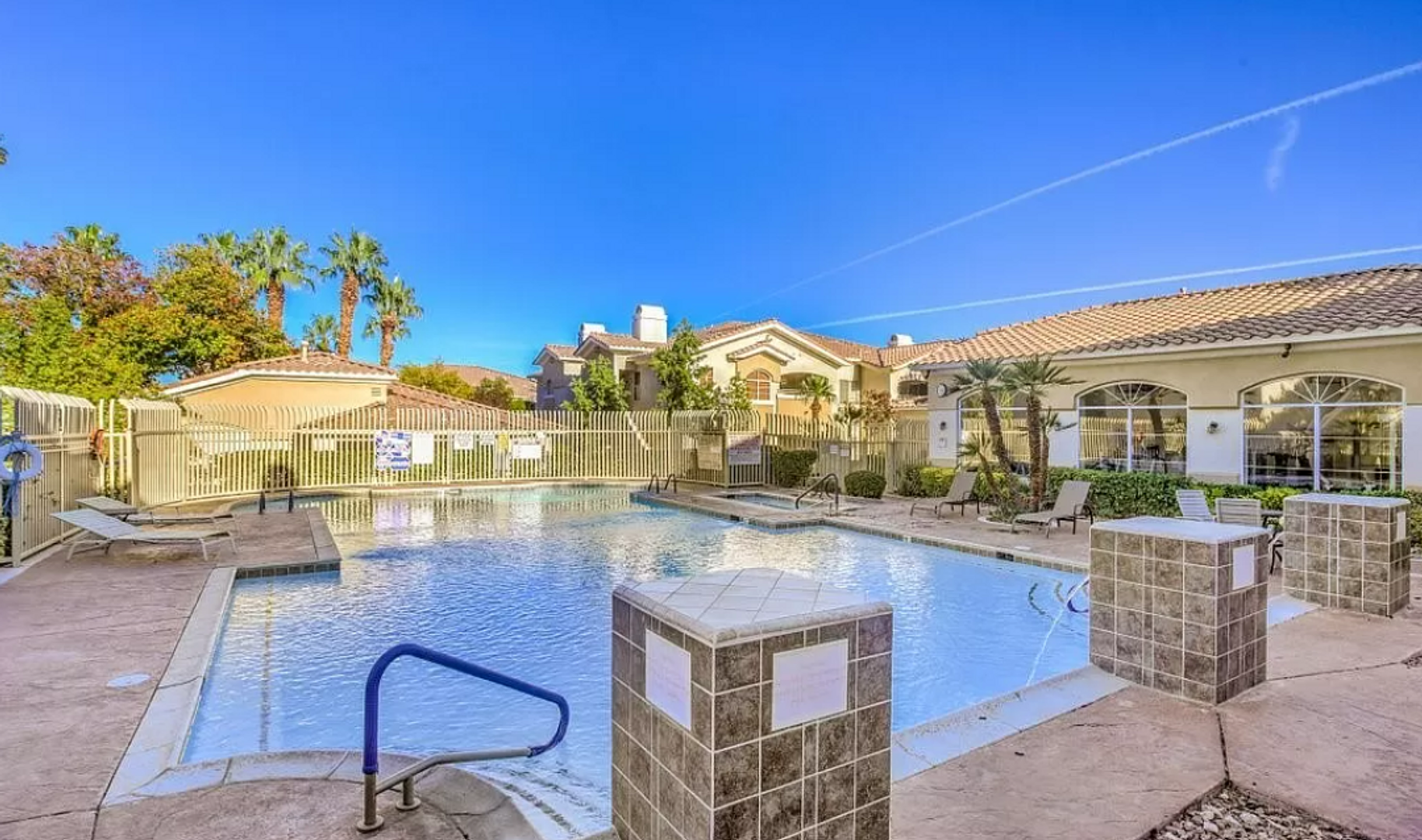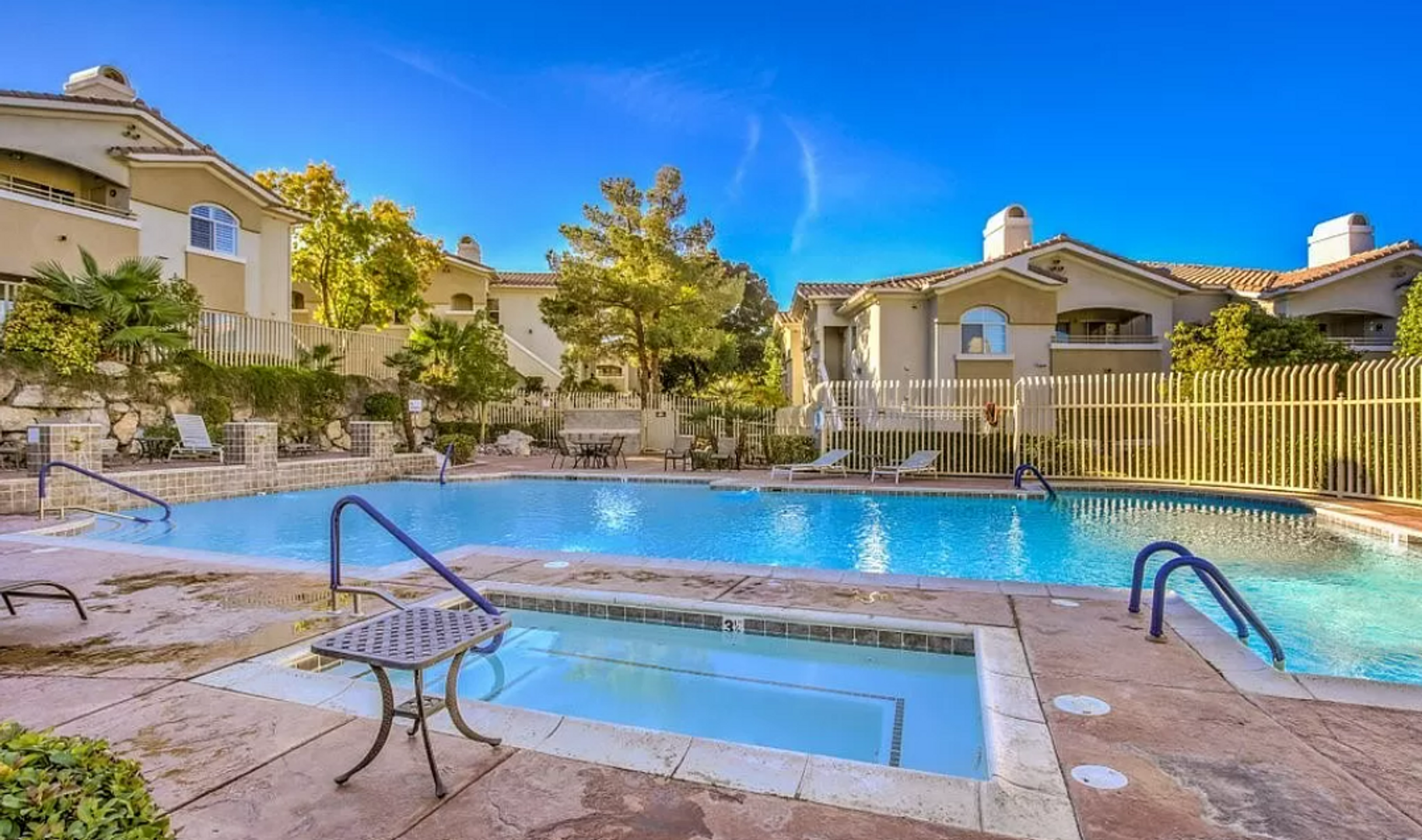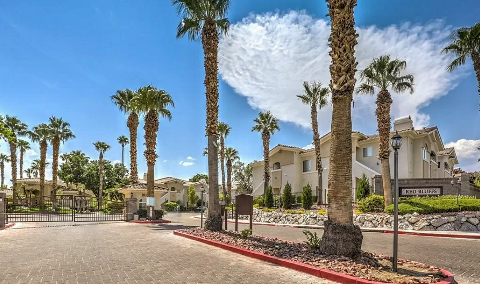This 2-bedroom, 2-bathroom condo is located in the highly desirable gated Red Bluffs community in Summerlin and features granite countertops, high-end finishes, and all appliances included, including a full-sized washer and dryer. The spacious primary suite offers a private balcony, walk-in closet, and an en-suite bathroom with a tub/shower combo. The unit is ideally situated right next to the community pool, offering convenient access for relaxation and everyday enjoyment. Additional features include a detached garage and fully equipped fitness center. Conveniently located just minutes from Summerlin Hospital, dining, and with easy freeway access, this home offers comfort and convenience in a prime Summerlin location. RENT INCLUDES $95 FOR WATER, SEWER AND TRASH, ALL INCORPORATED INTO THE MONTHLY RENT.